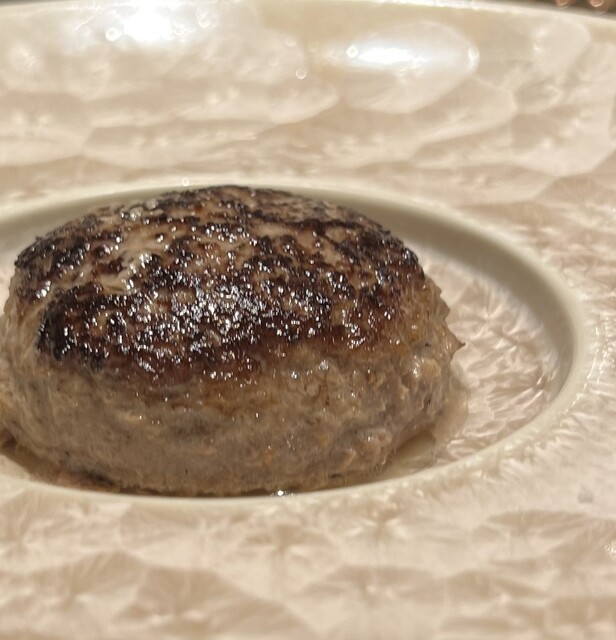コレ❣️すごいんの❣️ぷっくり膨らんだハンバーグにお箸をプツリ✨止めどなく溢れでる肉汁にうっとり✨ほんのりレアなのに口の中で溶ける感覚が今まで体感した事のない感じ✨肉の繊維はほどよく感じるのに溶ける‼️なにコレ⁉️ずっと食べ続けたくなるこの魅力❣️すごーーーわすごすご!!おわん型の器にな残 残った肉汁、、、これが次のメニューになるとは、、、(•ө•)♡
