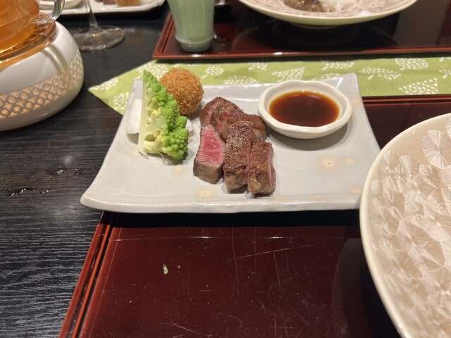 ランチでは少し贅沢だけど夜も同じコースがあるので嬉しい限り‼️更にお値段上げるとすき焼きとか色んな肉料理が食べられるとのこと、、♡