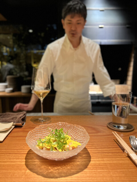 スタッフさまの手際のよい調理過程を視覚でも楽しめる至福の刻✨知り合いのスタッフくんのお陰で予約困難な席をゲッツ(σ´∀`)σthx✨