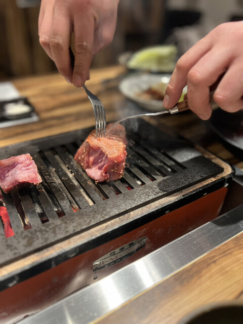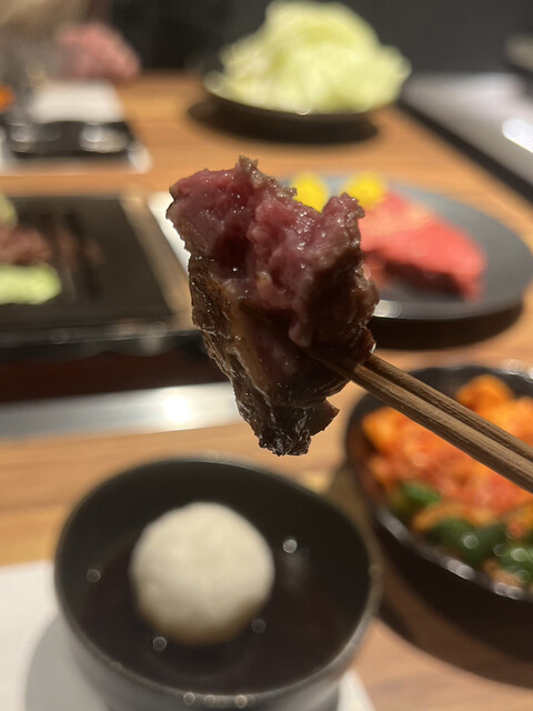 漬けタレ、モミダレ、肉の仕入れから鉄板、炭に至るまで全て奈良きみやと同じ物を使用✨肉や味は同じで空間がラグジュアリーで場所も北浜って✨✨✨最高やん✨✨