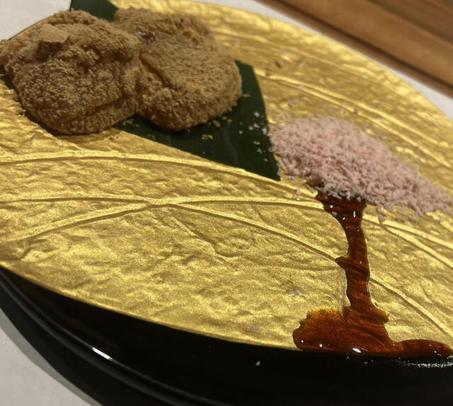 〆のわらび餅は桜の盛り付け⸜(* ॑꒳ ॑* )⸝パッ
