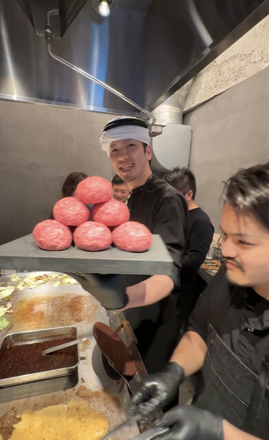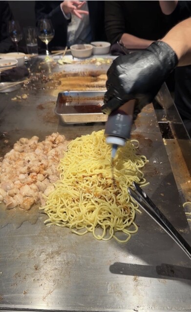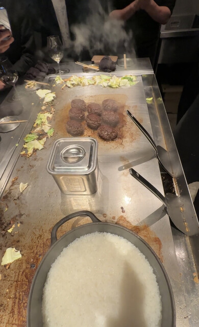 大人7人で2階にある個室、立食いスタイルのホルモン焼きや和牛の鉄板焼き。皆んなでワイワイ楽しすぎました〜^_^やきそばも、チャーハンもシメのハンバーグも最高に美味しかったです。飲み物はビール→ハイボール→ワインでした。