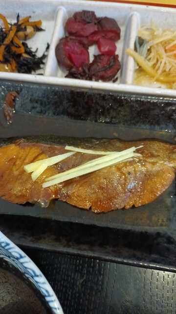 刺身三種盛り、ぶり煮つけ、イカフライ、おかず二品は大満足な内容でした