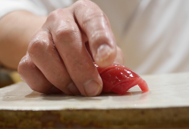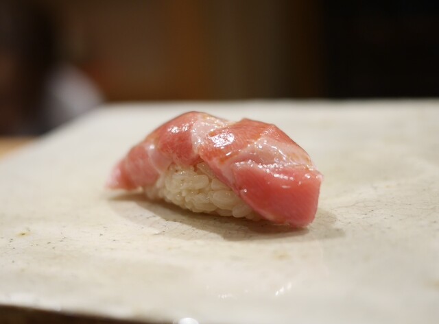 そして握り。一貫目の鱚でもう夢心地。芸術的に美しいフォルムでカメラのレンズ越しにドキっとしてしまうほど。シャリとの一体感を計算した塩味と寝かせ加減で、柔らかに解れて旨みの余韻だけが残る。隙なし。フジタの鮪は銚子。いつ来てもその時期の特級鮪がここにある。藤田さんとの信頼関係が間違いないものだと分かるもの。どれもが夢に出てくるほど感動的。