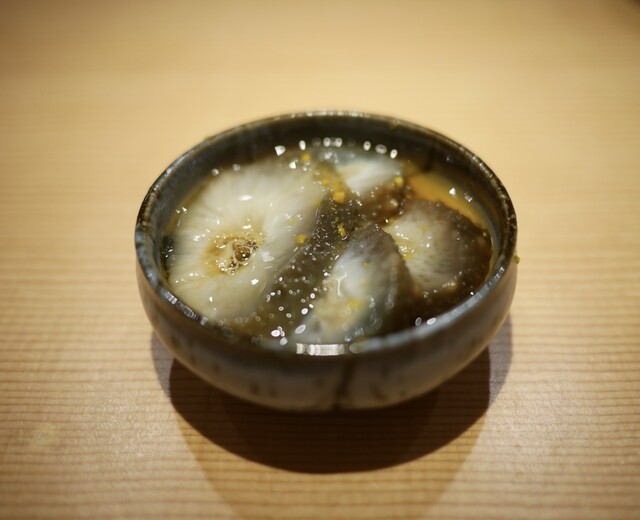 それにしても溜息がもれるほど美しい握りは相変わらず。赤身の爽やかな香りに仄かな鉄分と酸味がシャリと一体となり口どける。脂のノッた中トロの身厚の食べ応え。脂身の甘い香りと舌の上で溶けゆきシャリと交わる味わい。大トロの儚く一瞬で溶けて消える脂身と旨みが余韻となって続く口福感。たった3貫が口中で織りなす驚くほど感動的なストーリーに夢心地。コハダや鰯も明らかに他店のものとは一線を画す質と仕込みの精密丁寧さ。握りの進化が今だにとめどない。