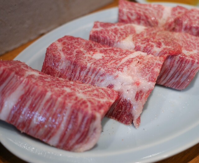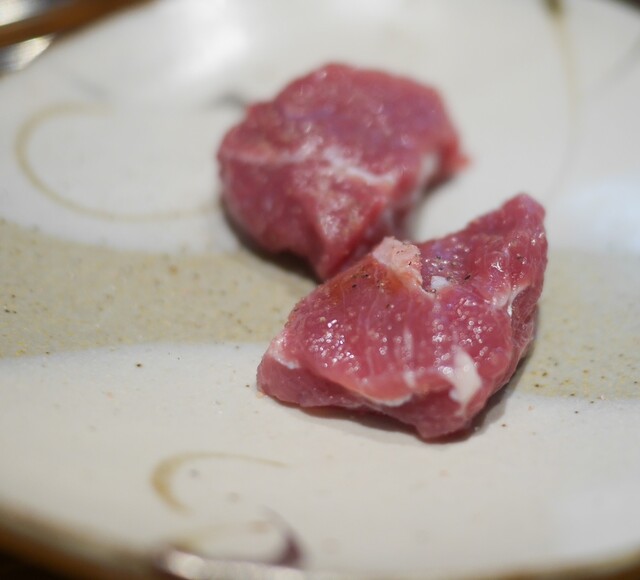 正肉も容赦ない厚みカットで。満席で忙しくても必ず提供直前にカットしてくれる沢石氏の丁寧なお仕事ぶり。最近、焼肉屋が久々にマイブームで色々と食べ歩きますが、比較してみて、このカットの腕もまた秀逸なんだなと気付きました。