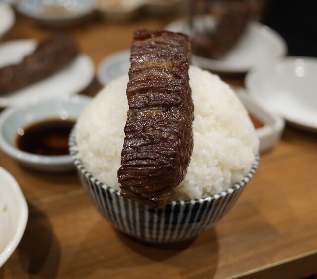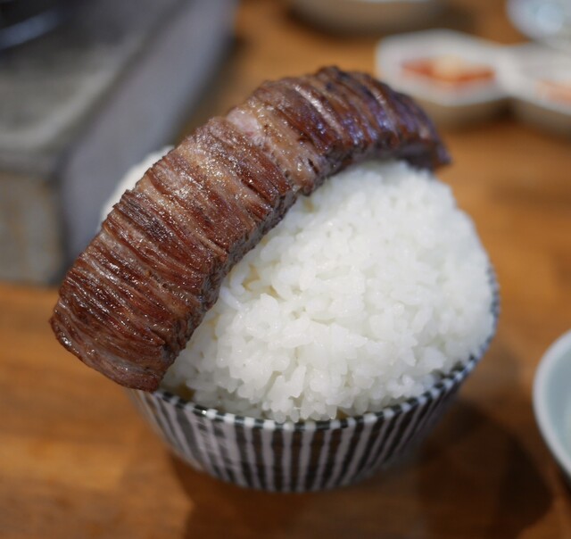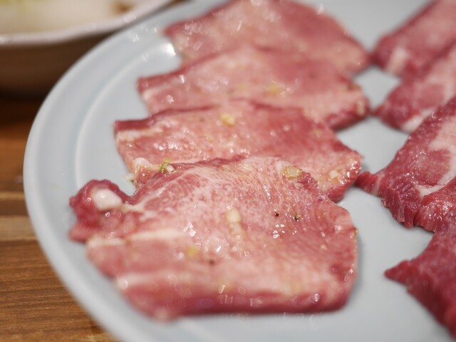 厚切り黒タン2種、ハラミ2種をマンガ盛りライスで楽しむ至福。付けダレがほんと旨い。肉の味を邪魔しない優しい塩味加減で無駄な化調で誤魔化していない。タレを付けなくても美味しい肉だけど旨みを更に押し上げてくれる。焼肉ってやはりタレが大事。タレの旨い焼肉屋は間違いなし。