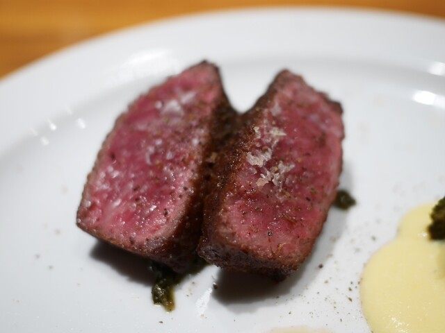 水牛モッツァレラのガスパチョにロゼワインからスタート。のっけからたまらんです(´∀`)。ナチュールワインなのでガブガブ飲んでも殆ど酔わずに健康的!鯖のブルスケッタ。イタリアンでこれほど〆加減が抜群の店はそう思い付きません。初めの2品でもう虜に。そして衝撃のバスク豚ローストのツナマヨソース(トンナートw)。なにこれ、こんなに旨いツナマヨ食べたことない(*´꒳`*)。永遠にワインと行ったり来たりしたい。心から10枚くらい食べたかったです笑。花ズッキーニのフリット。フリット自体も凄く旨いのですが、スープドポアソン的なソースがまたすこぶる旨くて驚いた。ここまでで天才シェフと確信。近所のラカンロの仲嶺シェフも天才だなと思いましたが、大阪はやはりグルメ大国ですねw。想像と期待の遥か上を飛び越えてくるんですから。途中でオードブル的な料理もワイン好きには堪らないコース構成。もう何杯飲んだか分かりませんw写真撮ってないワインがいくつもあったかと。気付けば3時間越えでしたが、全くもって話し足りないほど時間があっという間に過ぎゆきました。やはり誰と一緒に食事に行くかはとても大事です。メインは木下牛のクリミ。美しい火入れ断面で食べる前から旨いこと確定のやつ。しっかり歯応えに余韻は柔らかな口どけ。付け合わせのポテトまでがめちゃくちゃ旨い!〆はトリッパのタヤリン。トリッパが悶絶級。この日の胃袋は絶好調でいくらでも食べられそうでした笑。これで3万円でお釣りくるとか、会計で更に衝撃!!