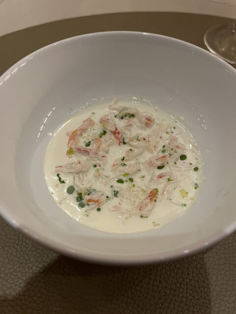 大手町の39階なので、それは夜景が綺麗でガラスの大きな開放感のあるフロアから見る壮大な景色にレストランがあり、ゆったりした空間と時間の中でコースがスタートしました〜!
