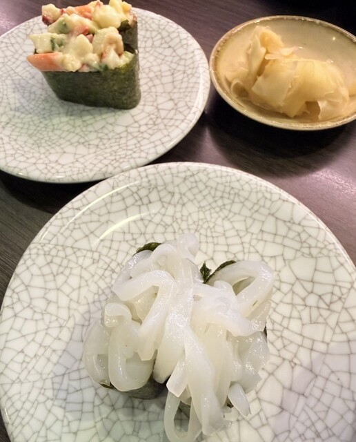 関サバ、関アジ、フグ、マグロ赤身、回転寿司お馴染みの海鮮サラダ軍艦などどれも美味しい!