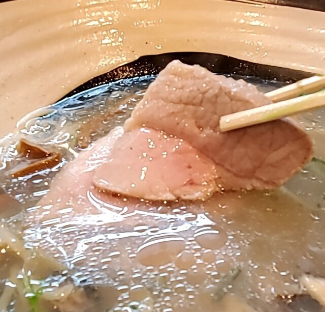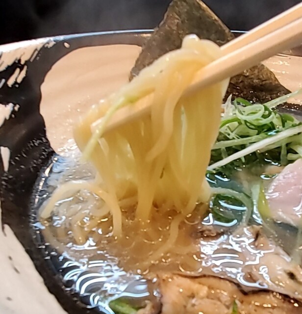 鶏と昆布に魚介の節系から取られた、あっさり清湯スープにごまかしのきかない塩味、あっさりですが深みのある美味しいスープです‼️