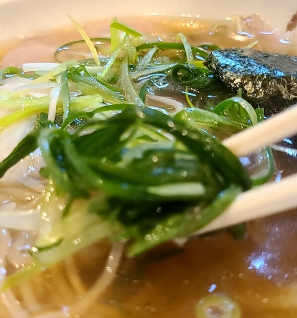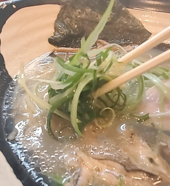 青ネギの食感も良く、メンマもコリコリです‼️海苔が出汁のきいたスープに良く合いますね‼️