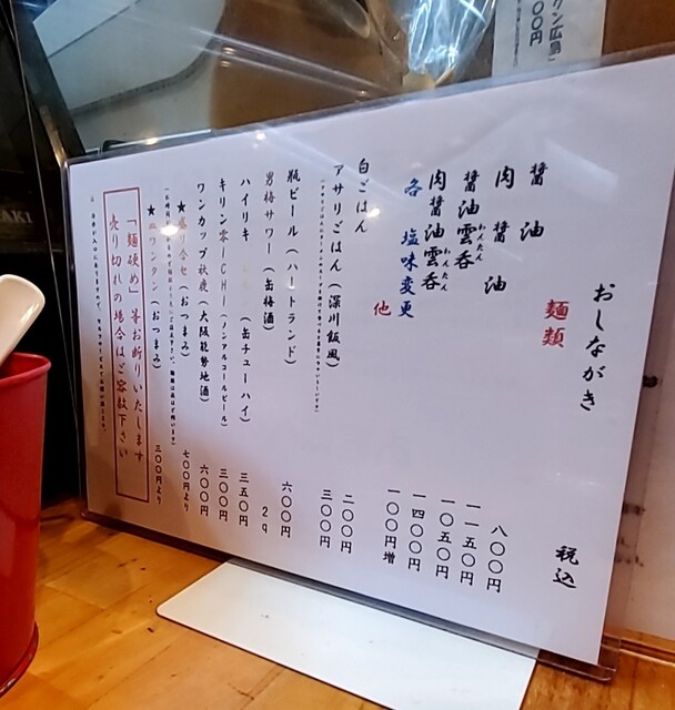 メニューは醤油、肉醤油、醤油雲呑、肉醤油雲呑、各塩です。