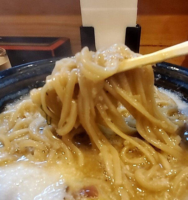 麺哲自慢の自家製麺の細麺を合わせて、麺にスープが良く絡んで美味しいです‼️麺哲はやっぱり麺ですね‼️