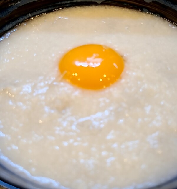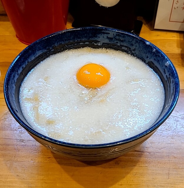 見た目は山芋が全体をおおい中央には卵黄です‼️