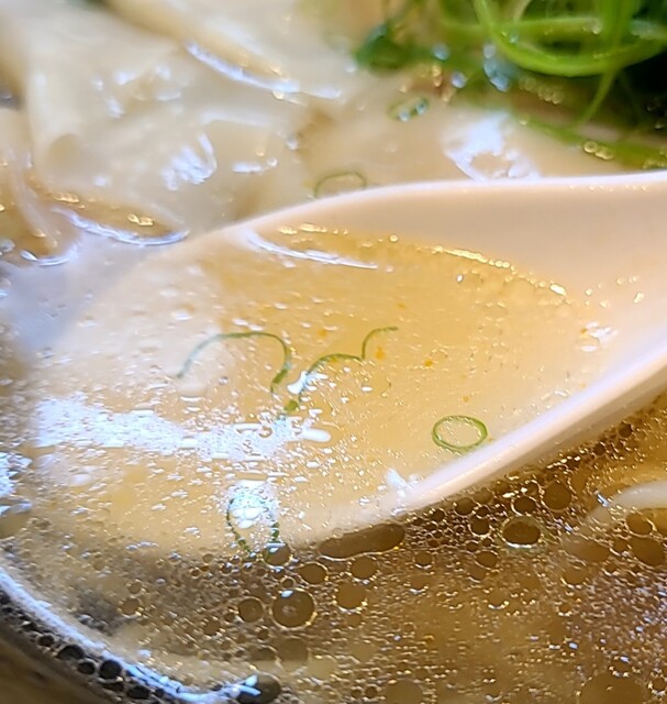 鶏と魚介、昆布等で取られた清湯スープに塩たれを合わせて、ブロークン牡蠣から出た出汁が合わさり、あっさりですが旨味しっかりの美味しいスープです‼️