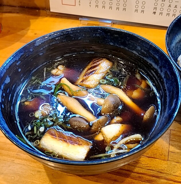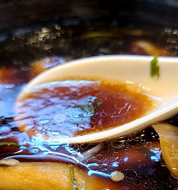 甘辛い濃い目の醤油スープ、わふうの鴨蒸篭のようで、山椒が香る美味しいスープです‼️
