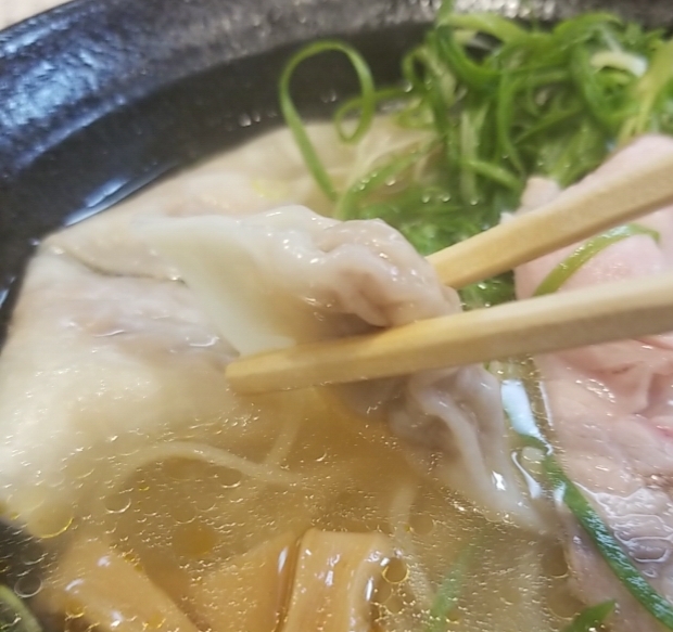 美味しい自家製麺のお店の雲呑はプリプリ、かなり美味しい。