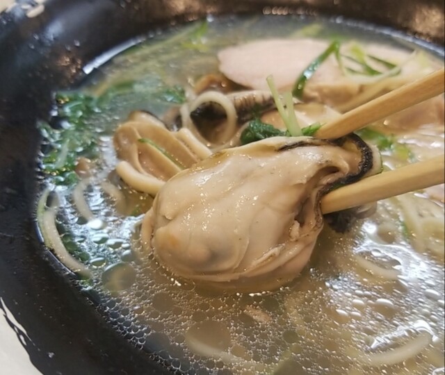 スープは鶏と魚介の旨味と牡蠣の旨味が加わった美味しいスープですね。