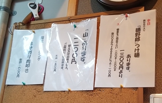 張り出しの限定メニューも、山と鶏セセリ入り「麺野郎」つけ麺ですね。
