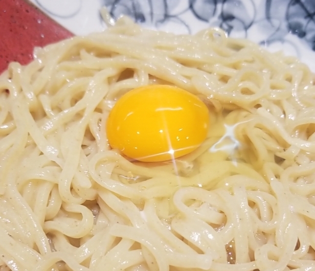 卵黄と麺をしっかりと絡めて頂きます。