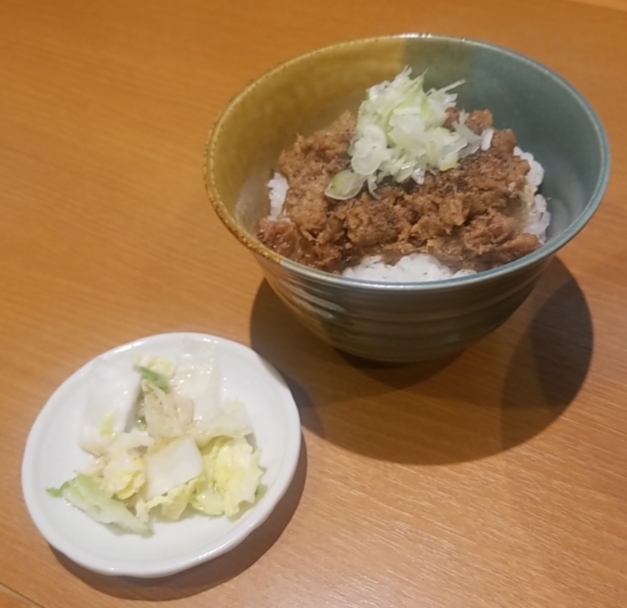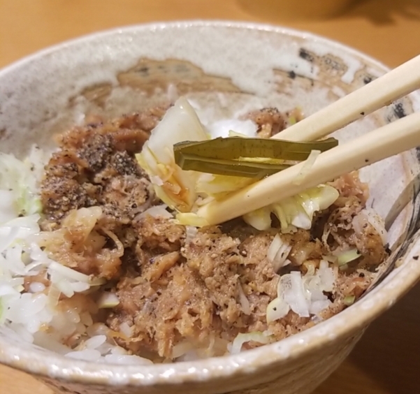 一緒に頂いた、黒豚味噌ご飯、甘味があり、豚の脂身が甘いです、一緒に白菜の浅漬け、甘めの黒豚味噌としょっぱい白菜の浅漬け、良く合って美味しい、美味しいスープに麺に美味しいご飯、満足行く一杯でした‼️
