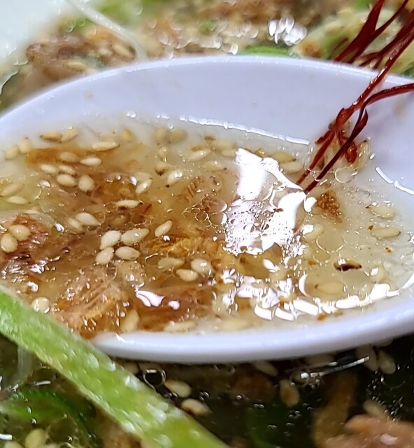 鶏と鰹節、昆布等の清湯スープに塩たれをあわせて‼️糸唐辛子、ニンニク等のパンチを加えたピリ辛スープ‼️