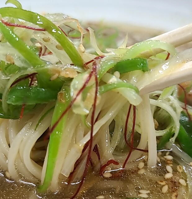 糸唐辛子、九条ネギと一緒にピリッとしながら良い食感、揚げネギの風味も香ばしく良いですね。