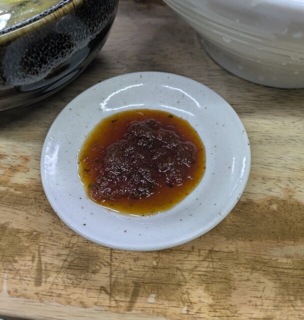 麺哲の隠れた名物、ピリッと辛い一杯。