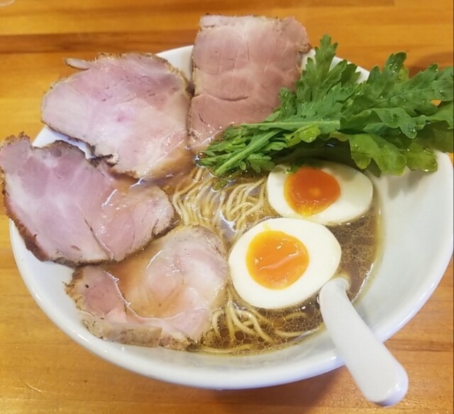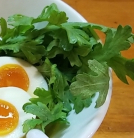 春菊も程よく、放牧鶏の煮玉子も美味しいですね‼️