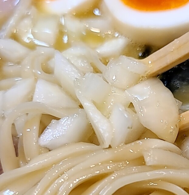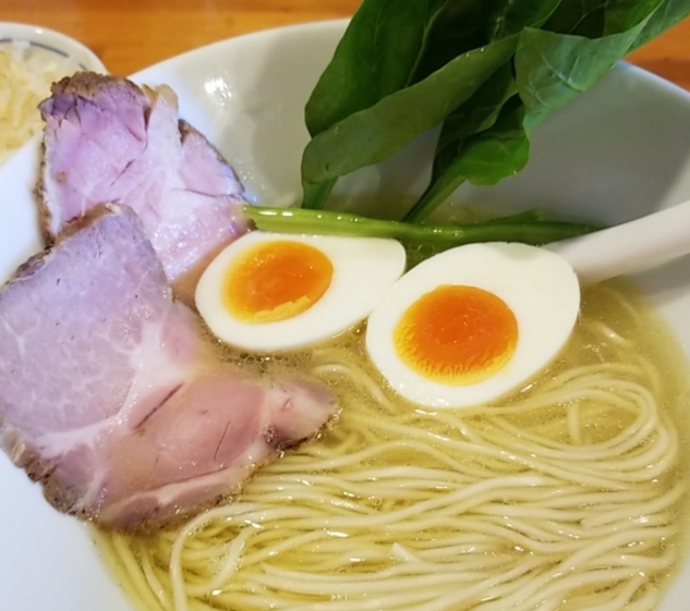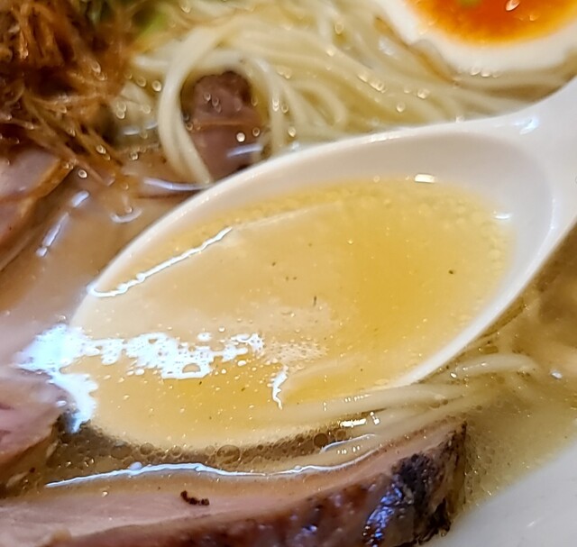 地鶏の旨味と魚介と貝の風味が塩なのでしっかりと感じられる美味しいスープです‼️