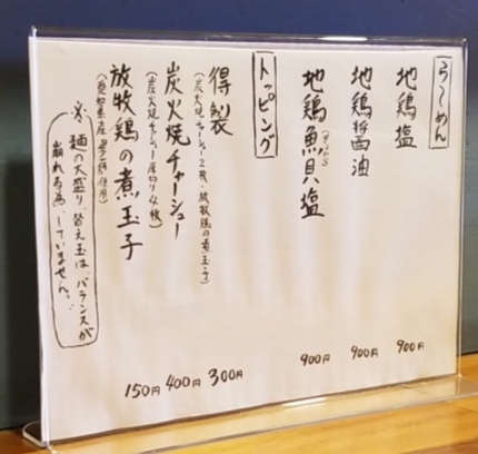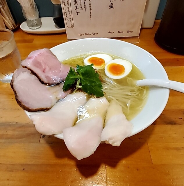 店頭には一名待ち状態‼️僕もその後ろに並びます‼️今回はワンオペ営業なので、気長に待つことに‼️10分くらいで席に‼️今回は⁉️得製地鶏塩です‼️