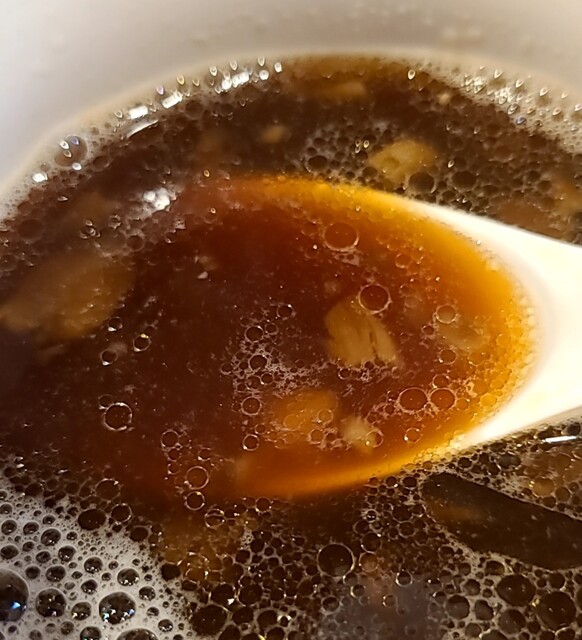 熱々でやけどしそうなくらいですがこれが又美味しい、麺をスープに潜らせて頂いて‼️
