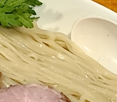 スープは地鶏から取られた旨味しっかり鶏清湯スープ、塩タレも程よく美味しいスープですね。麺は自家製の細麺、喉越し良く、地鶏塩清湯スープが良く絡んで美味しいです。