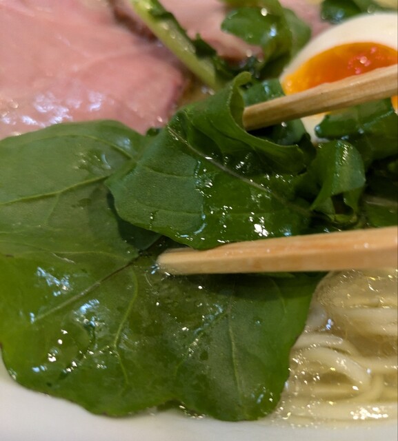 菊菜はスープに浸して麺と一緒に頂くと良く合います。