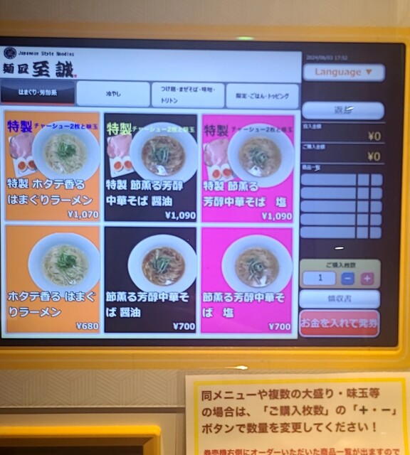 麺処至誠です。