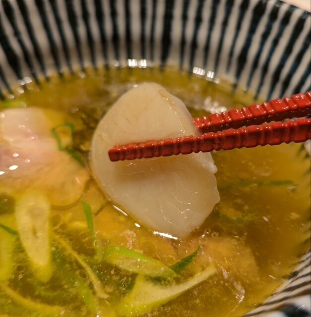 貝に昆布にホタテにサバ節色んな旨味が楽しめる美味しい一杯。