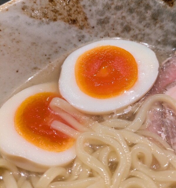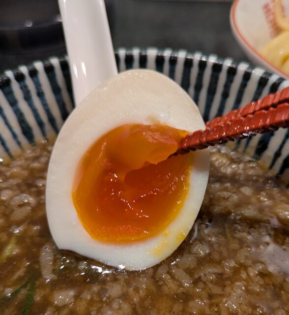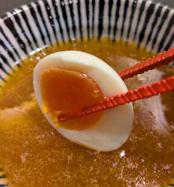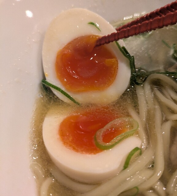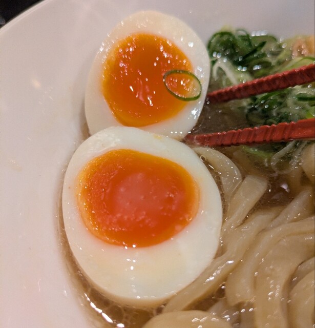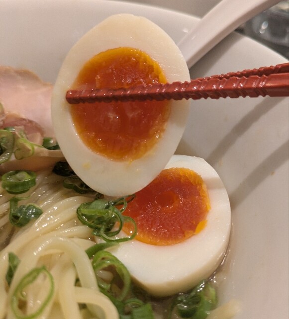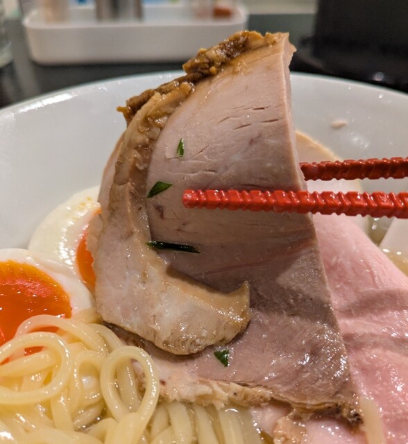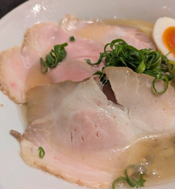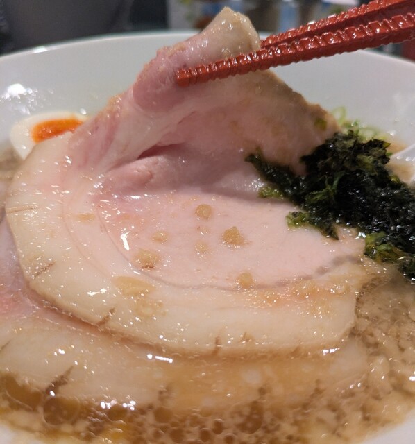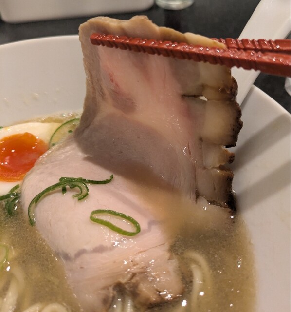 トッピングした味玉も黄身とろとろ味付もちょうど良く美味しいです。チャーシューも柔らかく肉々しく脂身のジューシー美味しいです。