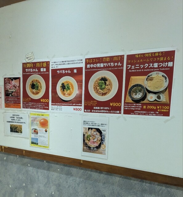 平日のランチタイムちょい過ぎです。時間も午後1時40分です。四ツ橋駅直結のビル地下1階ですね。この時間だと空いてるかなぁと思いましたが?結構なお客さんです。券売機で食券買って席にここはメニューが豊富でいつも迷いますが?今回は?岩中の背脂サバちゃんチャー1です。味玉もトッピングです。スープはサバから取られた、サバの旨味に風味がしっかりした美味しいスープ、表面には大量の岩中豚の背脂です。サバスープはあっさりですが、背脂のコクが加わり濃厚に美味しいスープです。麺は平打ちの中太麺、もちっと食感、美味しい麺、サバスープに背脂が良く絡んでこれ又美味しいです。青ネギの食感良く、バラ海苔の風味良くサバスープとも良く合い美味しいですね。トッピングした味玉も黄身とろとろ味付もちょうど良くこれ又美味しいです。岩中豚のレアチャーシュー、肉々しくでも柔らかく脂身ジューシー、美味しいチャーシューですね。サバに背脂のコク深い美味しい一杯でした。