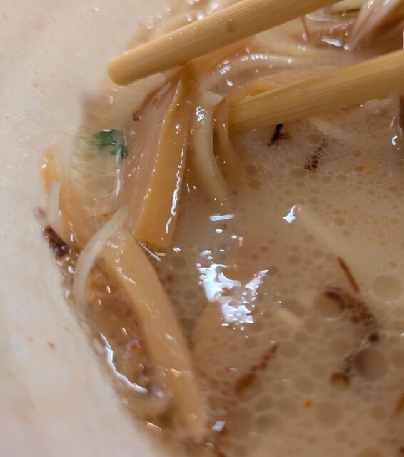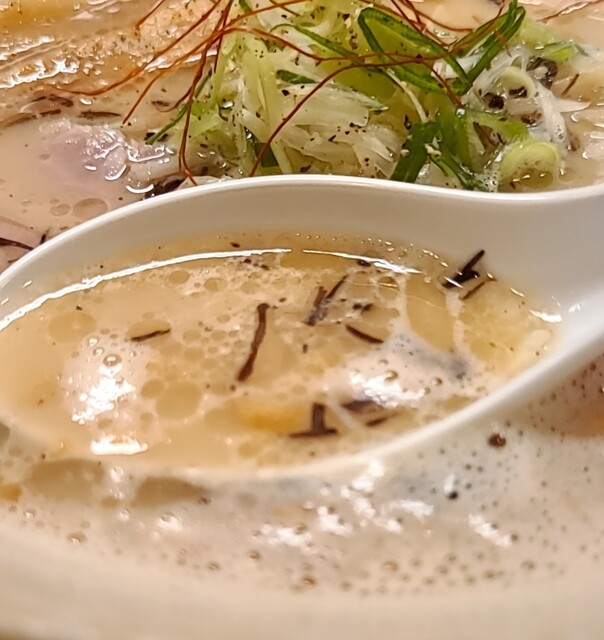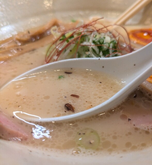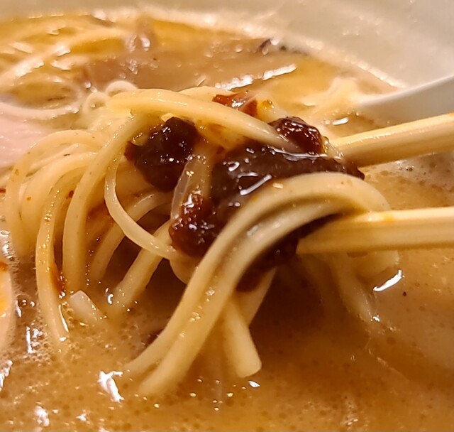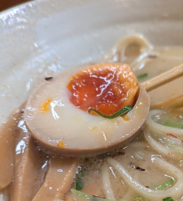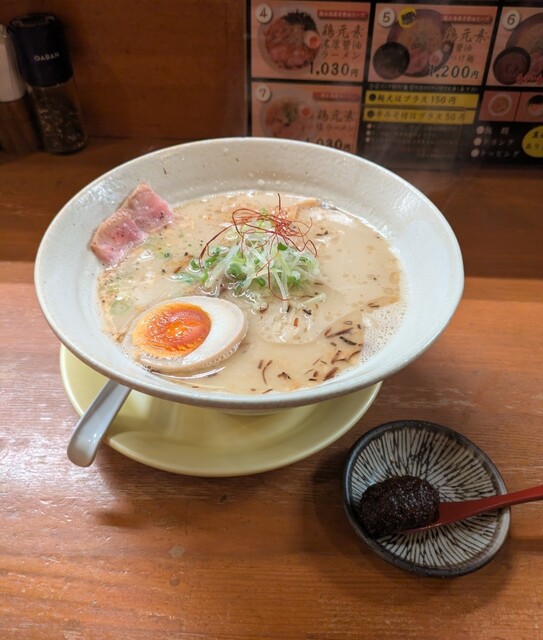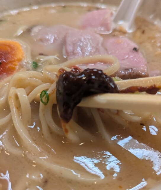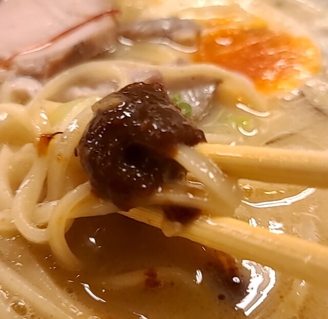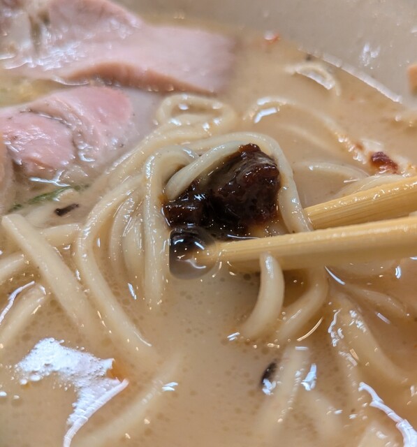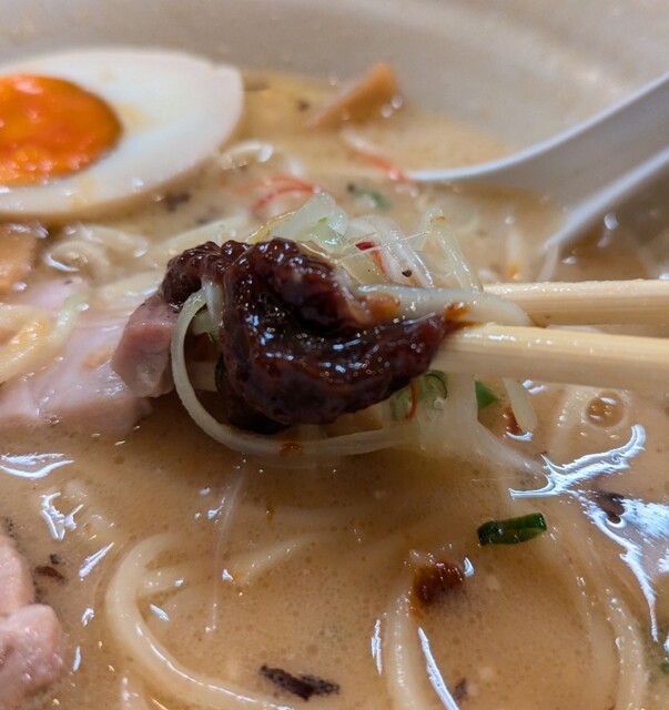 まろやか鶏白湯にピリッと辛みその美味しい一杯。