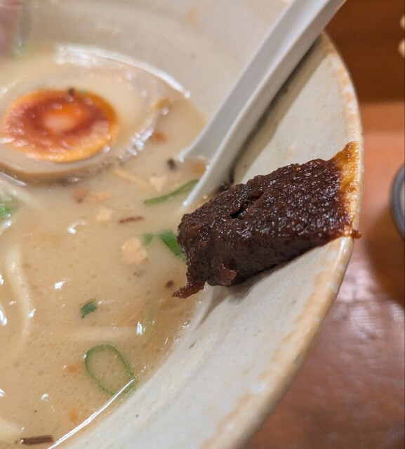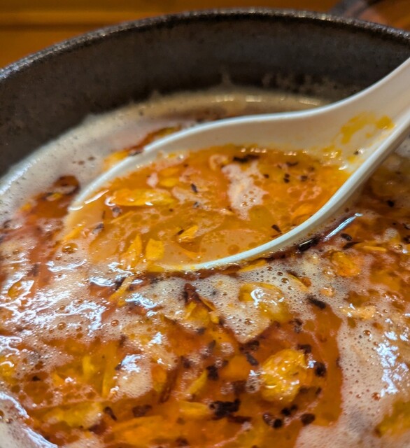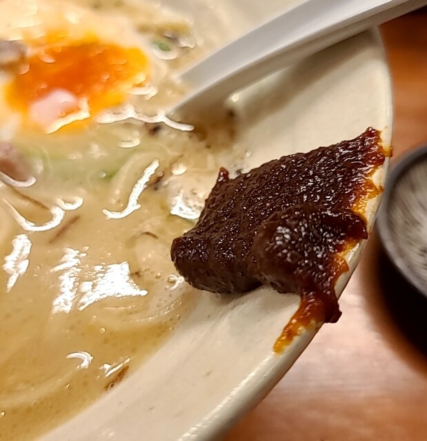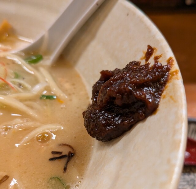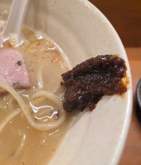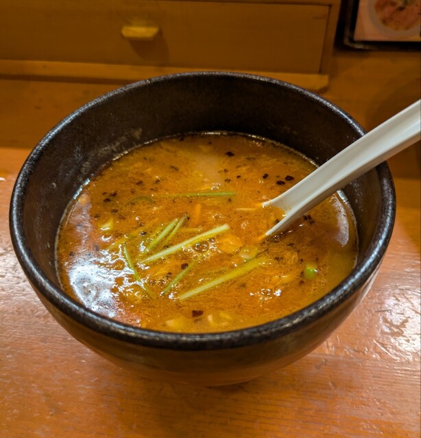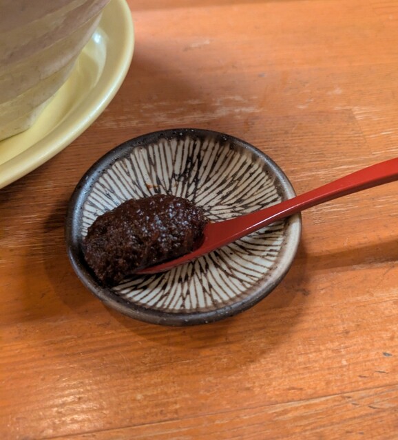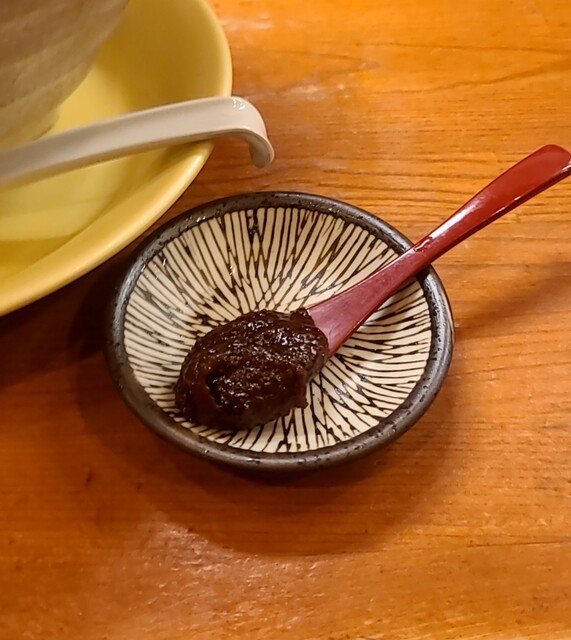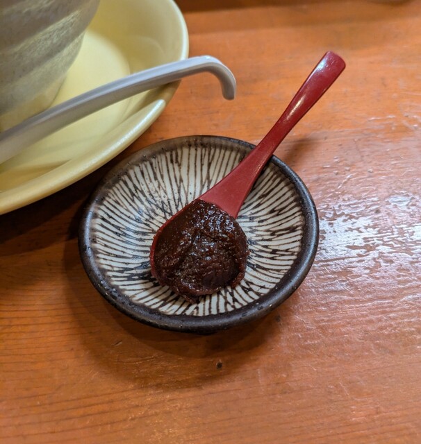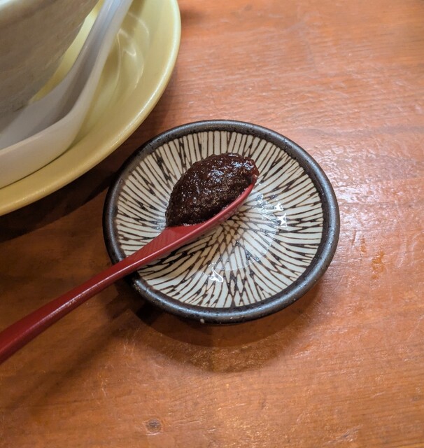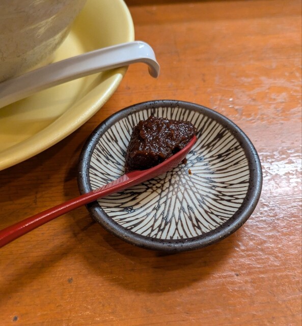 別皿の辛みそ、スープに溶かして、最初甘くて後でピリッと美味しいピリ辛スープびに、あっさりですが深い味わいの美味しい一杯でした。