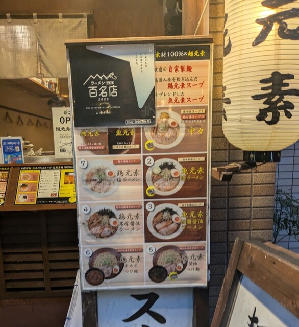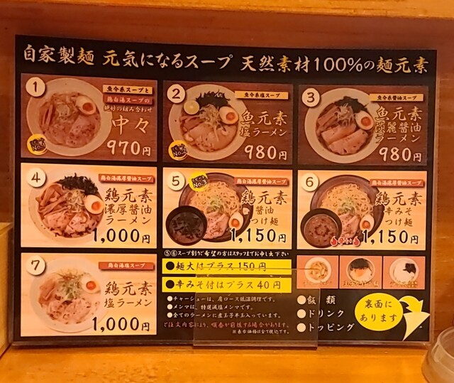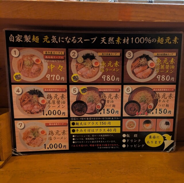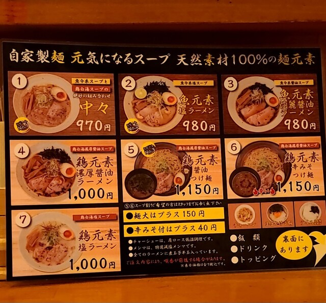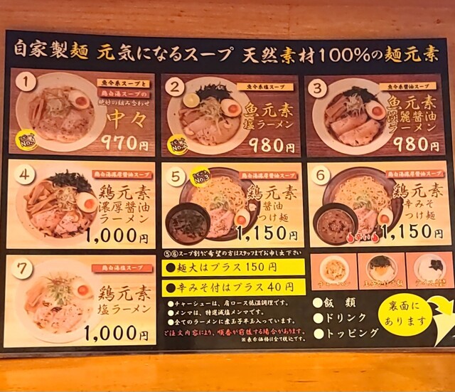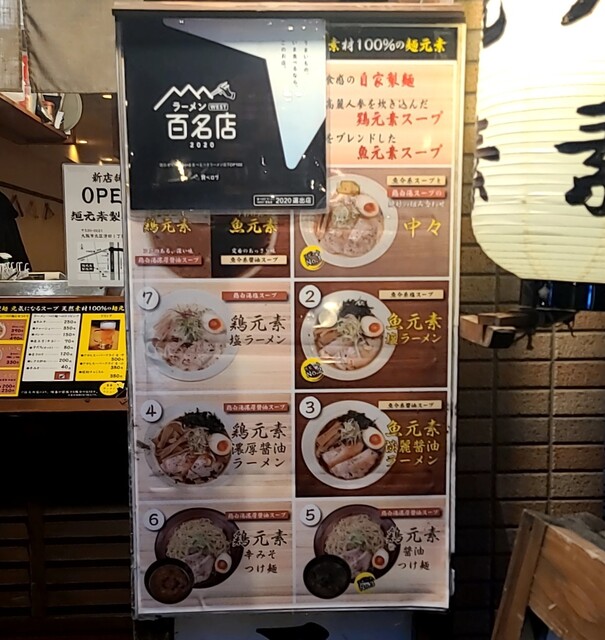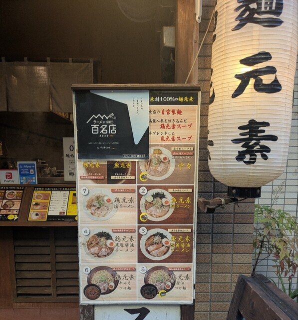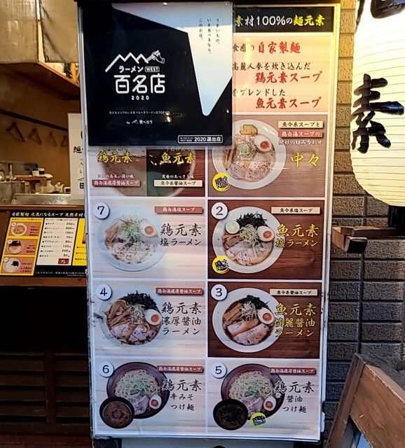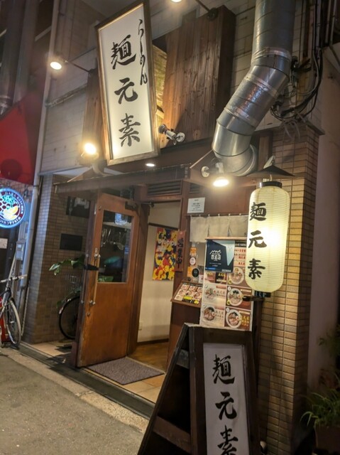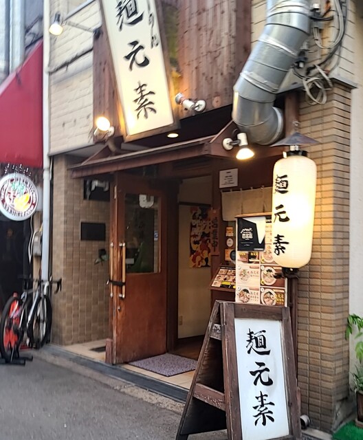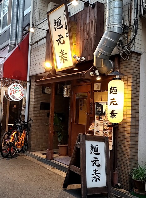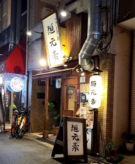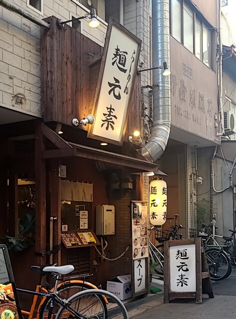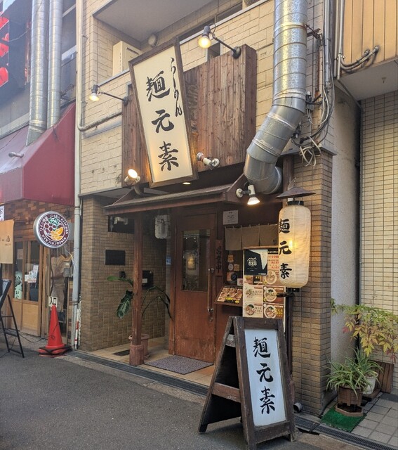 天神橋筋六丁目からちょいと歩いて、天満駅近くですね。時間も夕方6時頃の訪問です。店内は先客数名、その後もお客さんです。棚には朝鮮人参も置かれてますね。今回は?鶏元素塩ラーメンです。鶏白湯スープに塩たれを合わせた、まったりですが、思いの外あっさりしたスープ、クリーミー美味しいですね。自家製の中細麺、鶏白湯スープが良く絡んで美味しいですね。青ネギ白ネギの食感も良く、糸唐辛子のピリッと感も美味しいです。揚げネギの風味も香ばしく良いですね。メンマもコリコリ美味しいです。途中から辛みそも投入、鶏白湯辛みそラーメンにちょいと甘くてピリッと辛く美味しいですね。味玉もほど良い半熟、レアチャーシュー、肉肉しく歯ごたえ良くこれ又美味しいです。鶏白湯に辛みそ合わせて美味しい一杯でした。