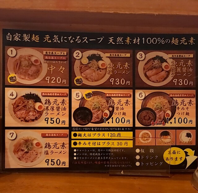 スープは鶏元素の鶏白湯スープに魚元素の魚介清湯スープを合わせて、醤油たれに塩たれを合わせたスープ、鶏白湯のこくにあっさり魚介の風味も、朝鮮人参も入ったあっさりだけどこくのある美味しいスープです。