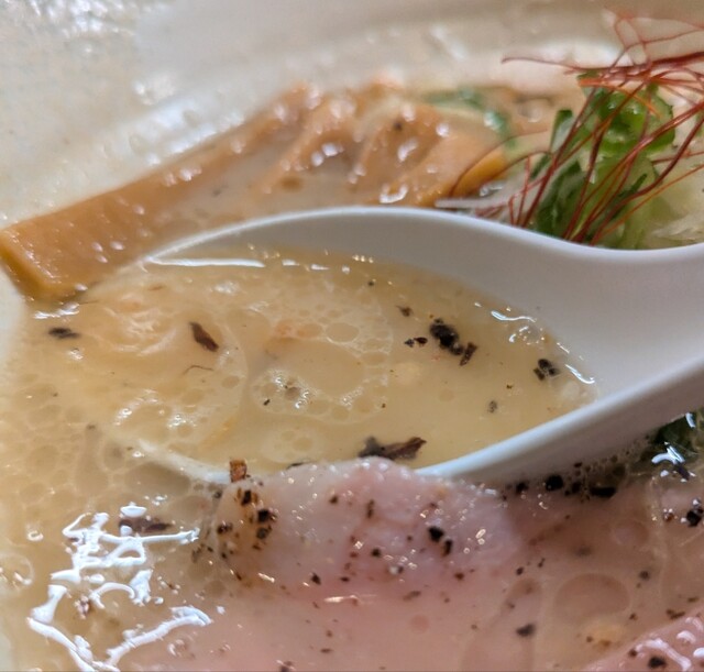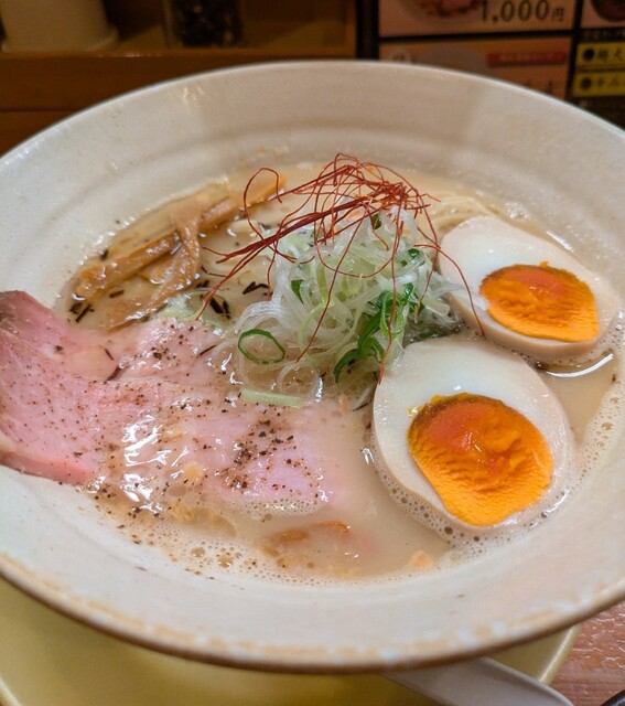 あっさり鶏白湯に優しい塩身の美味しい一杯。