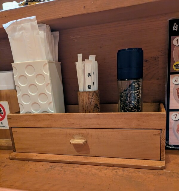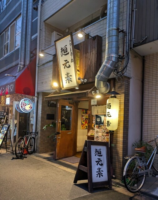 週末の夕方です。天満駅周辺です。やはりお昼から飲んでる方々たくさんです。週末の天満はお酒天国ですね。そんな天満で少し早い夕食です。時間も。午後5時45分です。店内は先客1名、その後はどんどんお客さんです。棚には高麗人参が置いてありますね。今回は?鶏元素塩ラーメンです。もちろん辛みそも頂いて、スープはまろやか鶏白湯スープに高麗人参、優しい塩タレ合わせて、揚げネギの風味の良い、まろやか美味しいスープ。麺は自家製の中細麺、程よい腰、まろやか鶏白湯スープが良く絡んで美味しいです。青ネギに白ネギ、食感良く美味しいです。糸唐辛子がちょいとピリッとこれ又美味しいです。メンマもコリコリです。味玉半玉、程よい味付、黄身も程よく美味しいです。レアチャーシューは肉々しく歯ごたえ良く旨味もしっかりこれ又美味しいです。卓上のブラックペッパーちょいと入れてブラックペッパーのピリッと感が鶏白湯の甘みが引き立ちさらに美味しいです。別皿の辛みそ、投入して、麺に絡めて、最初甘くて後からピリッとコチュジャンのような美味しい辛みそです。全部スープに溶かして、鶏白湯塩スープが鶏白湯辛みそスープにピリッと辛いでも美味しいスープに。まろやか鶏白湯にピリッと辛みその美味しい一杯でした。