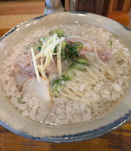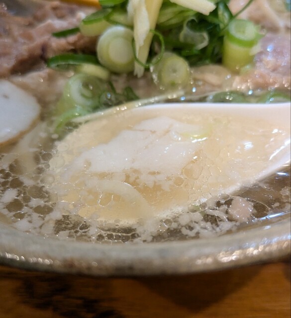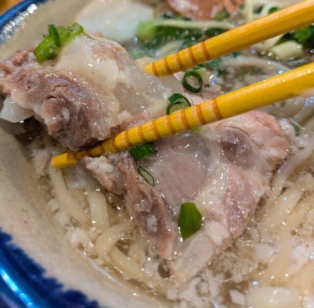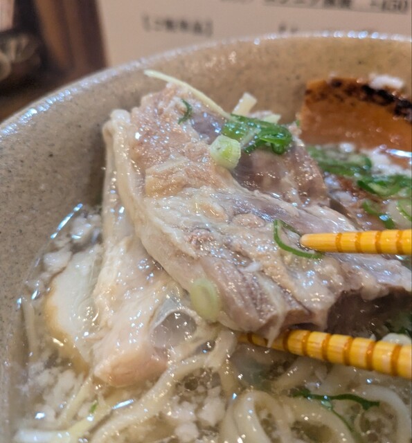 あっさりスープに背脂とろとろ塩軟骨ソーキの美味しい一杯。