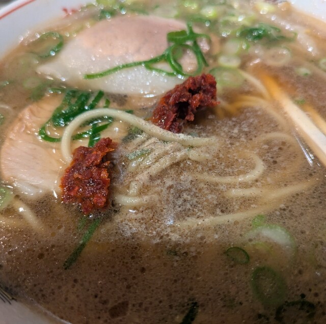 日が落ちるのも早くなり、時間も夕方5時半、もう真っ暗です。そのな日も落ちや夕方の天神橋筋六丁目、10月にオープン、京都の名店が大阪に初出店です。もちろん初訪問です。この時間、店頭に行列も無くラッキーです。券売機で食券買って店内に、かなりの賑わいですね。今回は?ミニラーメンです。一緒にハシ肉丼小も頂いて。スープハシ豚清湯スープ、醬油タレを合わせた、昔ながらのあっさり京都ラーメンスープ、シンプルですが旨味しっかりの美味しいスープ、麺は細麺です。普通の硬さで頂いて、あっさり豚清湯スープが良く絡んで美味しいです。京都野菜九条ネギの食感も良く。緑豆モヤシの食感も良く美味しいです。ミニラーメンなのにチャーシューが結構たくさん入って、赤身は歯ごたえ良く美味しいです。脂身もジューシー、これ又美味しいですね。ハシ肉丼小は煮込んで味付られたチャーシューのハシ、角切りで肉々しく、卵黄崩して絡めて頂いて、ご飯が進む美味しいです。ハシ肉丼これはかなり好きな丼ですね。卓上のヤンニンジャンと胡椒入れて、胡椒でちょいピリッと、ヤンニンジャンは韓国の調味料、辛さと風味で美味しい味変です。京都の名店の味が天神橋筋六丁目で頂ける美味しい一杯でした。