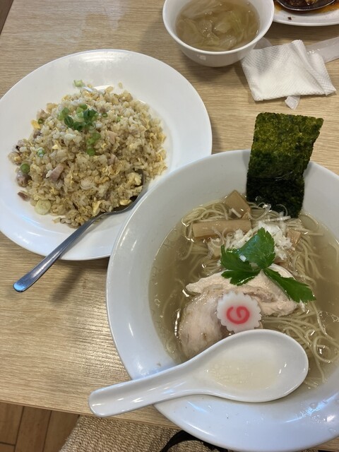 私は塩ラーメンと半チャーハンのセット。