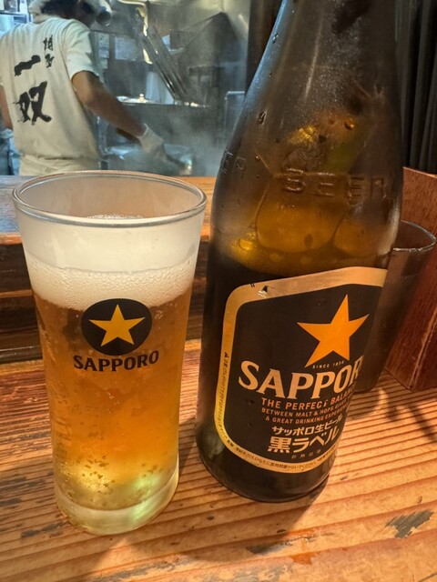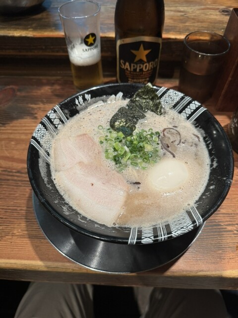 券売機で味玉ラーメンと瓶ビールを購入の後、着席