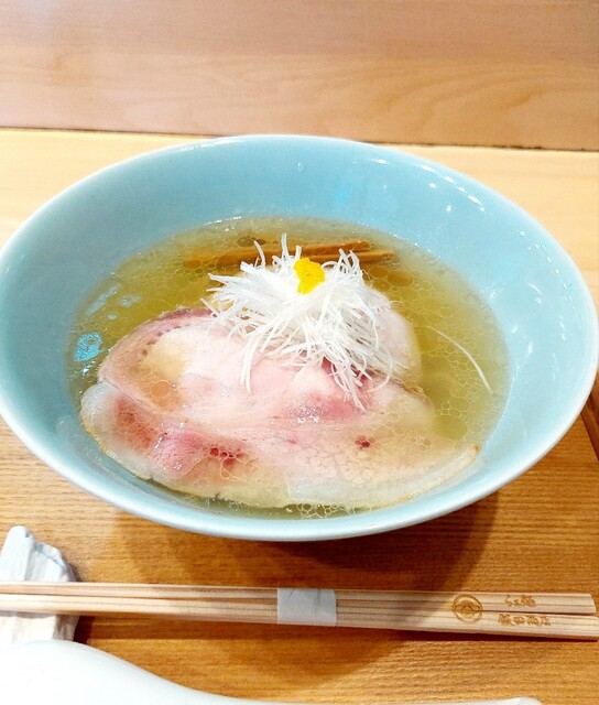 月曜日の14:00の予約が奇跡的に取れ訪問しました。時間前に17名が揃っていて、店の方から順番に食券購入を促されます。その後連食の順番だったり、麺の量の調整であったりそれぞれから希望を聞いていただけます。全員のオーダーを確認後1組ずつ呼ばれて席に着きます。私は、塩らぁ麺、わんたん入り醤油チャーシュー麺の麺少なめに土鍋ご飯の小をオーダーしてあったので、カウンター1番席について3分くらいで最初の塩らぁ麺が到着です。綺麗なスープに東京Xのレアチャーシュー、白髪ネギに柚子のかけら。まるで料亭で出てくるようなビジュアルです。スープは透き通ったアッサリ目ですが滋味深い味わいですね。麺は丸みを帯びた柔らか目の麺ですが優しい食感と味ですね。美味しいですそしてそれ以上に美味しかったのが醤油わんたんチャーシュー麺ですよ。スープが深いです。一口で微笑みが出てきます。やはり日本一なんですね。東京Xと霧島黒豚のチャーシューは滑らかでとろけるXとしっかりお味の黒豚のコントラストが良いですね。麺は細ストレート麺で食感が塩よりしっかりしています。わんたんは純粋金華豚と山水地鶏の2種類でしっかりと存在感を出しています。さらに土鍋ご飯の小と、本来食べきれない量ですが、しっかりと完食、スープも完飲させていただきました。予約時間前に店頭に来たときからオーダーの確認、入店時の挨拶、途中での気配り、丁寧な説明、帰る際には店主自ら「ありがとうございました。またお越しください」と頭を下げてくださいました。その後ろの5名の従業員さんたちも全員の起立で頭を下げていてくれました。もう天津神の領域ですね。感動以外の何者でもありません。また頑張って予約取ります!